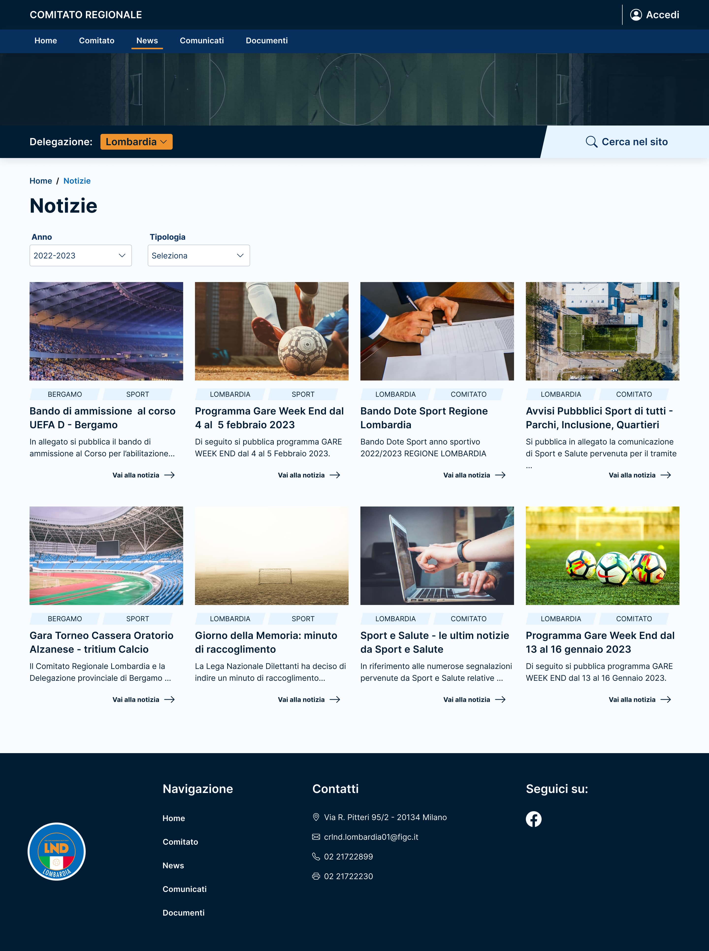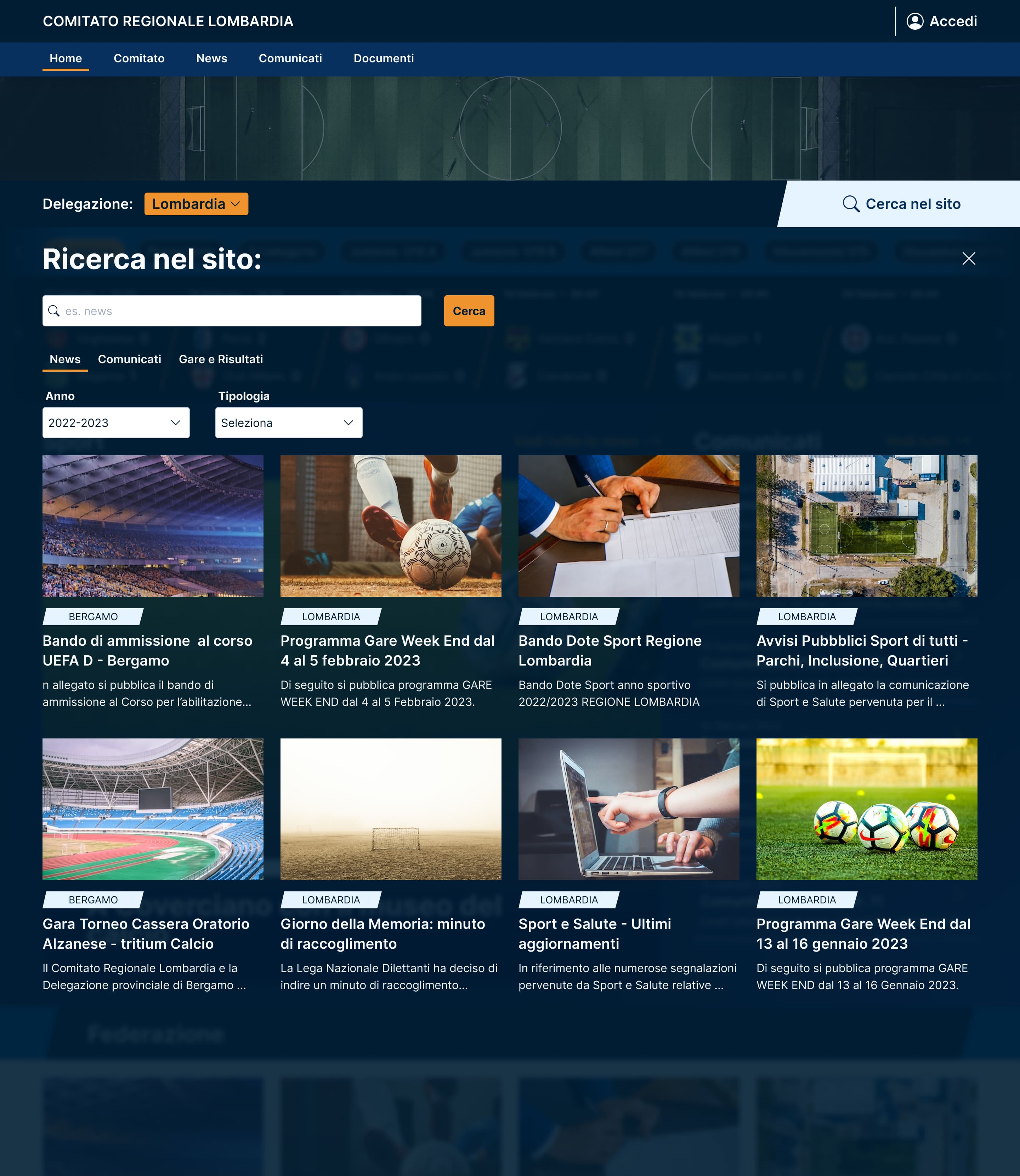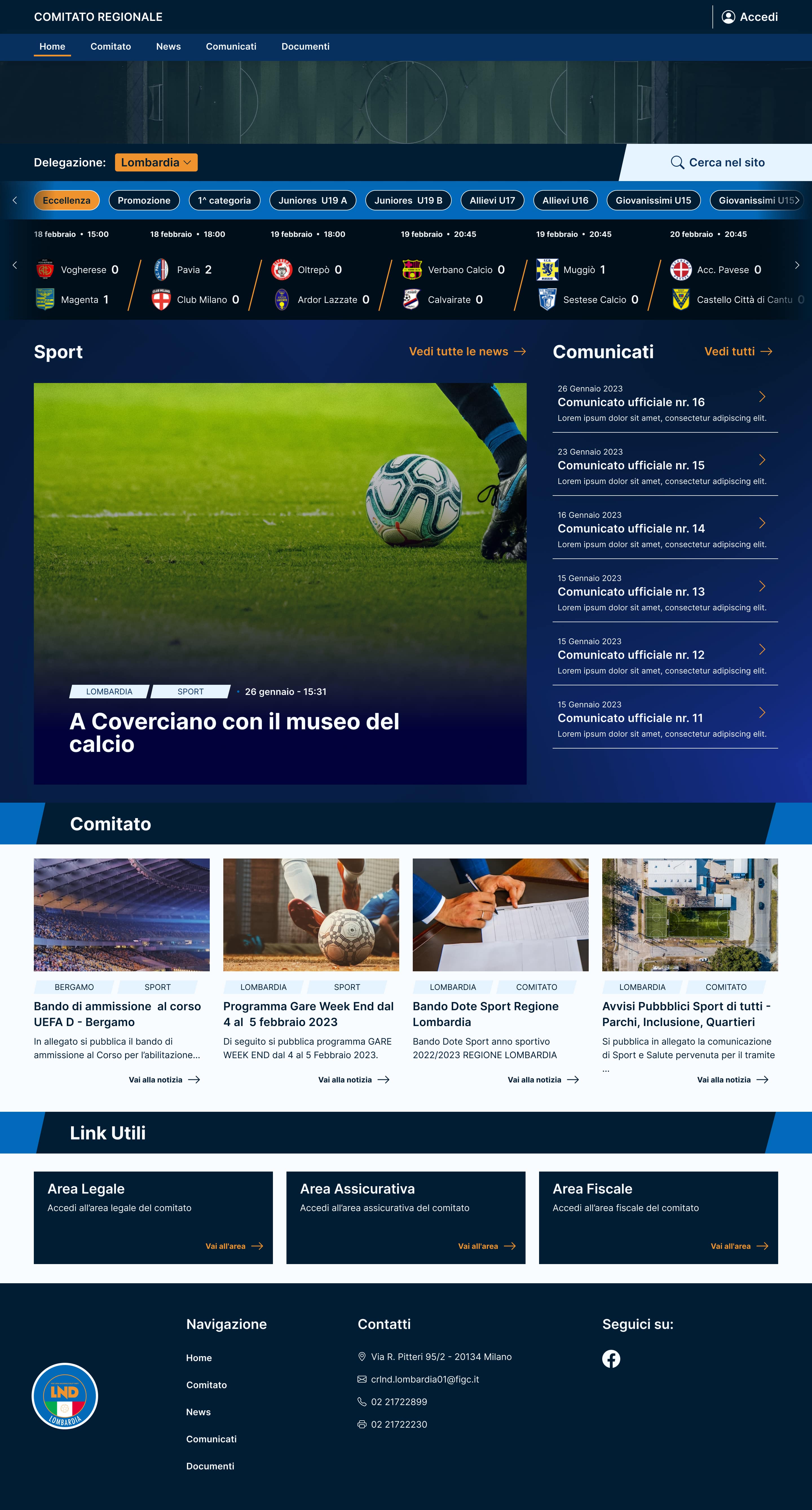 I was asked to design the new website for a football committee. The main necessities were to show relevant information such as match results (with the possibility of choosing the desired league) and elements as evidence news.